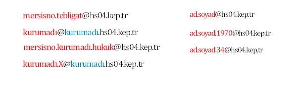 - Alan adı @hs04.kep.tr ya da @kurumadı.hs04.kep.tr olabilir.